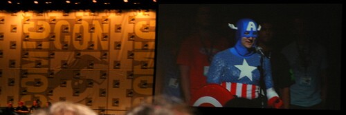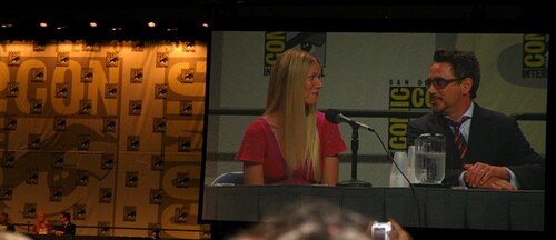 3:10 p.m. We decide an hour and 15 minutes early to begin standing in the line for the Marvel Movie announcement session in the main hall. I had actually expected Comic-Con to be full of C-list stars such as Richard Dean Anderson but comic book movies have become so popular these days (see: cash cows) that many of tonight's speakers could have been ripped from an Oscar Party, or at least an US Weekly cover. Robert Downey, Jr., Gwyneth Paltrow, Edward Norton, Liv Tyler, Josh Hartnett, Milla Jovovich, etc. The question remains, how will these stars hold up when the Q&A starts with the Great Unwashed? Inside the Actors Studio this definitely ain't.