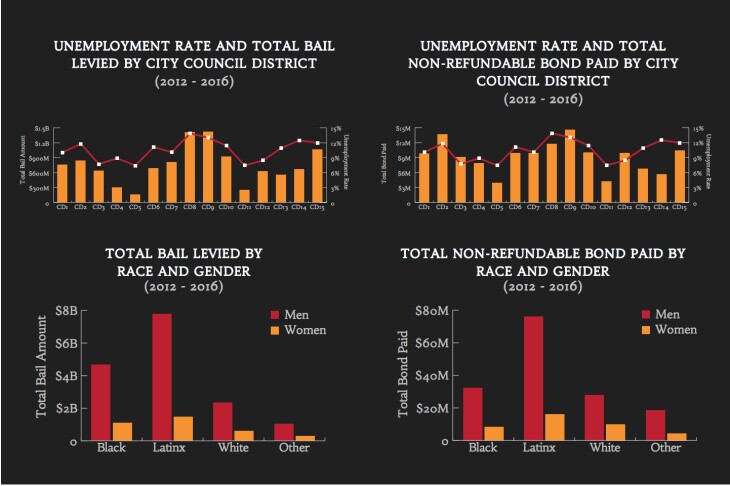 To make matters worse, that UCLA study on bail in L.A. County found "the greatest sums of money bail were levied in the City Council districts with the highest rates of unemployment." On top of that, it said, "nearly four billion dollars in money bail was levied on houseless persons."