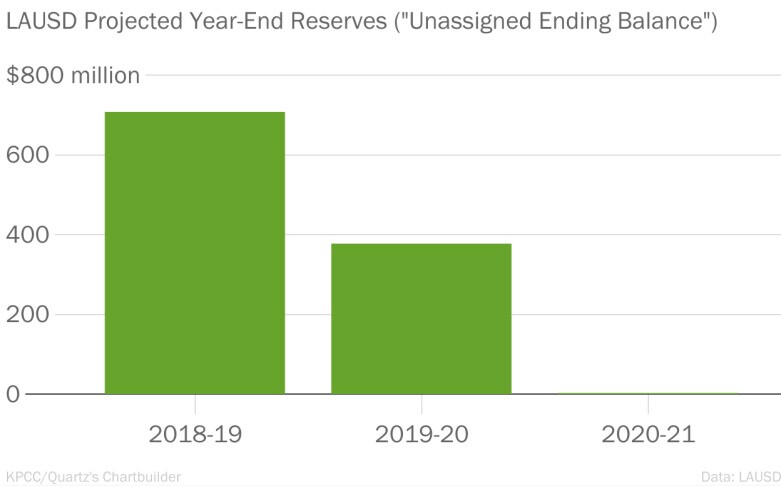LAUSD's budget is balanced this school year. It's balanced next year. But there is a question mark over whether the district can end the third year, 2020-21, in the black.