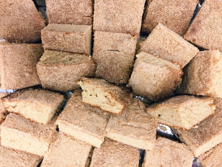 Dusted with a crumbly, brown sugar topping, it's also substantial. Each fluffy slab is approximately two inches square.