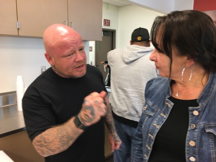 This month's meeting featured Danny Lansdale, a motivational speaker who started Standing United, a nonprofit to help newly released ex-offenders get on their feet. He founded the organization after years of drug addiction and 15 years in prison.