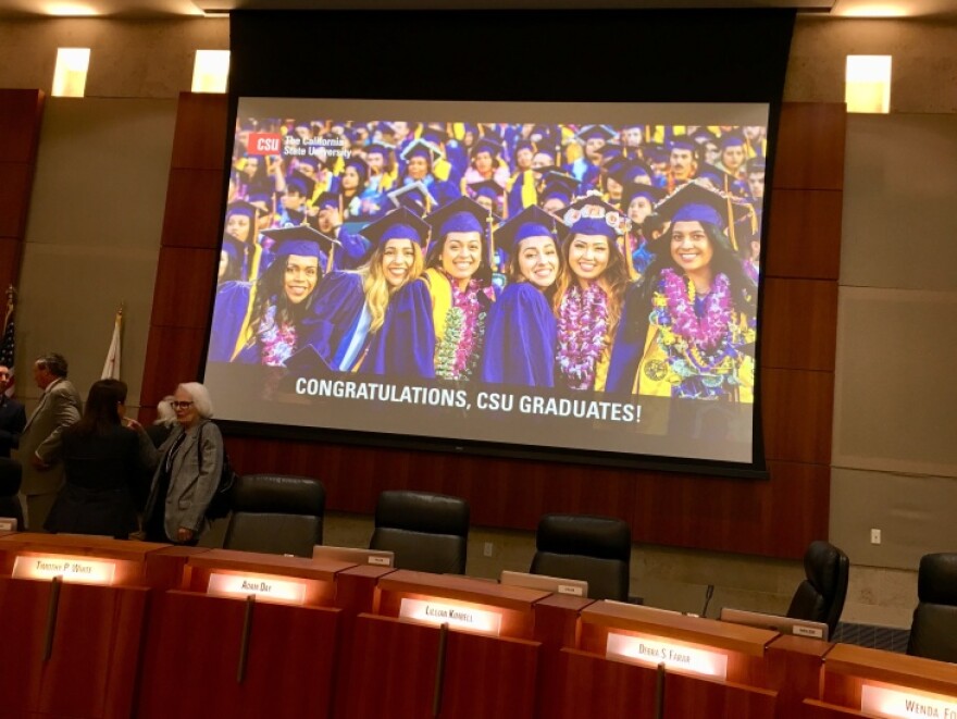 The proposed new admissions standard is one prong in a wide effort calledGraduation Initiative 2025. It's headed by Associate Vice Chancellor Minor, and is designed to increase the number of students who earn a Cal State degree within four years. He says one of the major obstacles is that about a third of each year's incoming freshmen have trouble passing college-level math and English classes.