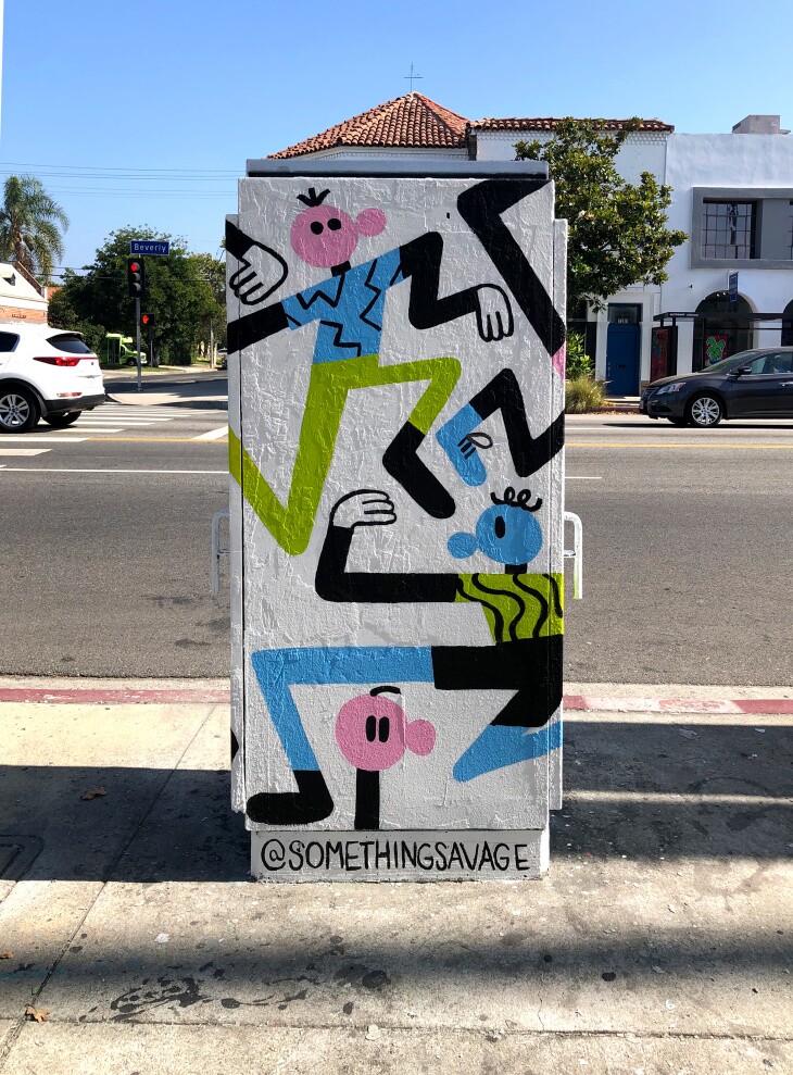 In L.A., it's pretty desolate on many sidewalks. My box is mostly about community, abstracting the human figure, and adding a pop of color and playfulness to that little area.