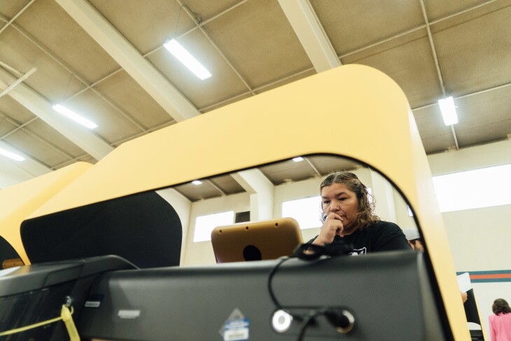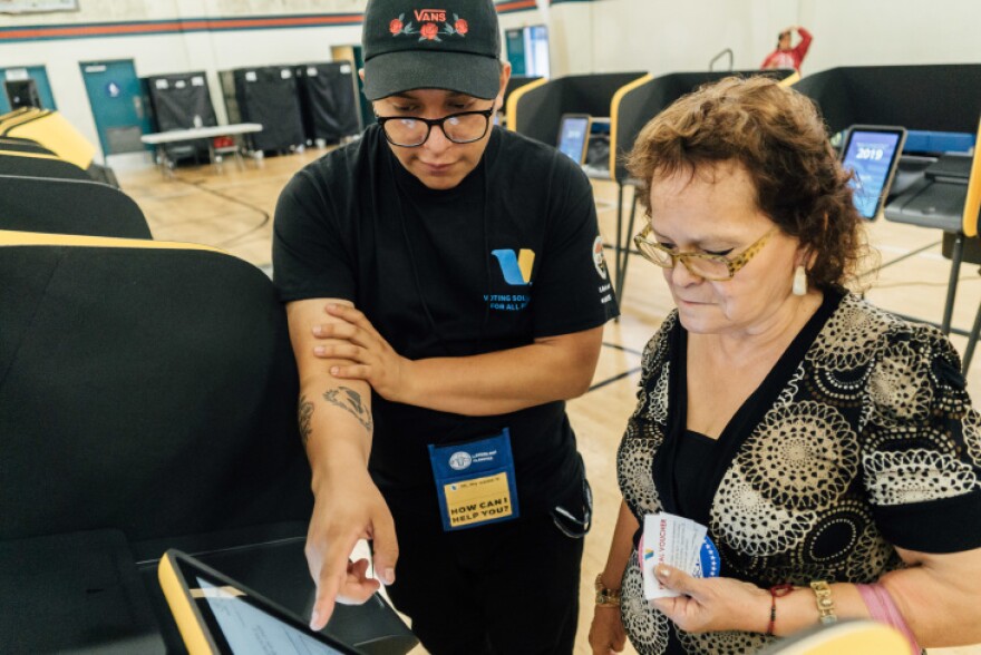 In many jurisdictions, ballot marking devices are available to accommodate people with vision or hearing problems, while most voters use pen and paper to cast a ballot. Logan believes this creates a "separate but equal type of scenario." Starting with the presidential primary, every in-person L.A. voter must use a ballot marking device, which have audio headphone options, large tactile buttons, and the option to vote in 13 languages.