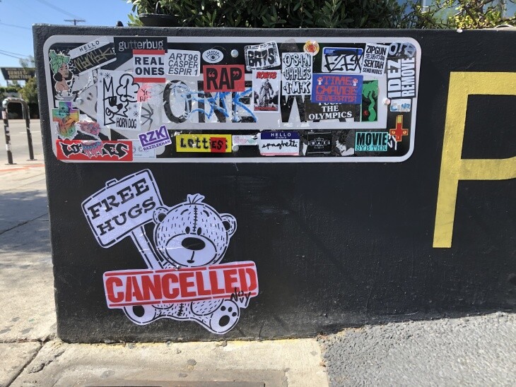 Novy's "Free Hugs Cancelled" street art. (Courtesy Jeremy Novy)