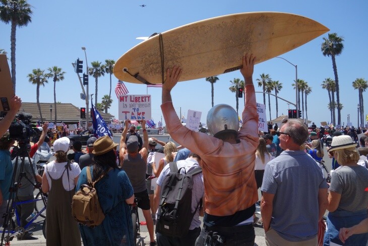 On Friday, thousands of demonstrators crowded Huntington Beach to rally against state-ordered closures and the economic shutdown writ large. Other things they're reportedly upset about: their personal freedom being infringed upon; their constitutional rights being infringed upon; science in general; and "not being able to hang out with their friends," according to one.