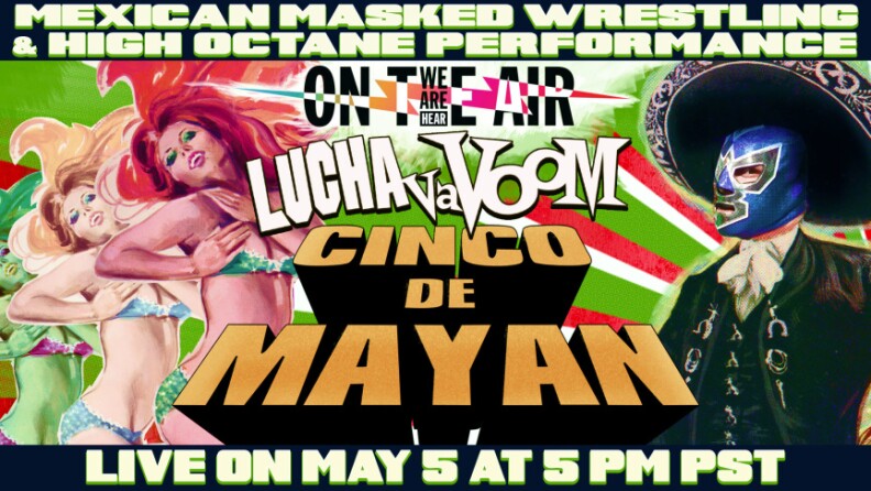 Watch an hour-long edition of Lucha va Voom's (LVV) variety show on YouTube, featuring Mexican masked wrestling, burlesque, comedy and music. The streaming event features the best moments from LVV's Cinco de Mayan shows in L.A. over the years. For a little warm-up, check out a live dance party from 4 - 5 pm PDT on @luchavavoom's Instagram featuring a DJ set from DJ Garron Gash and LVV's go-go dancers Miss Rita and Moana Santana.
