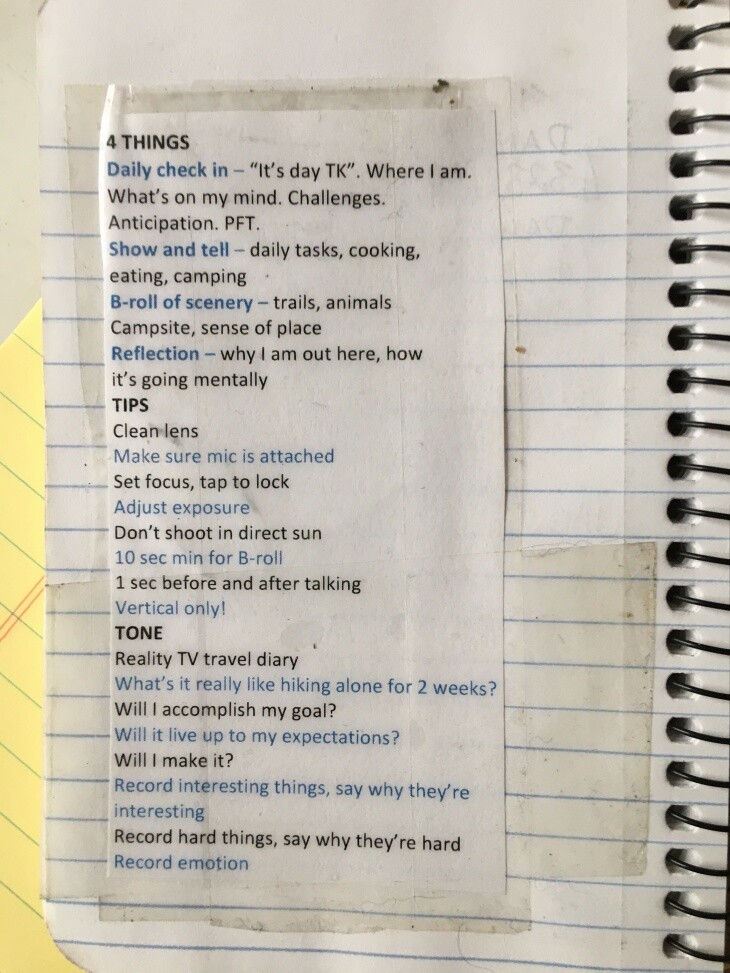 The shot list Emily Guerin took on her solo hike. (Emily Guerin / LAist)