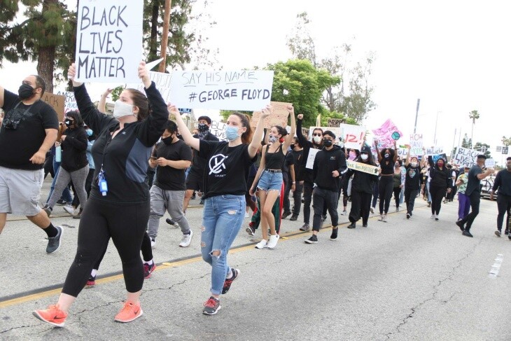 Reporting here in Glendora on Route 66 where over 60 people are protesting in the memory of George Floyd. Many honks and cheers from those passing by so far. pic.twitter.com/DZABbmAeOt
