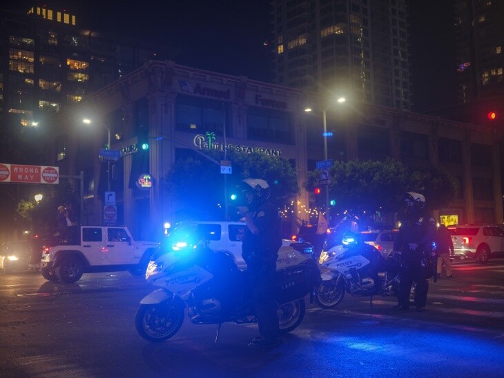 Then came the confrontations between crowds and police. The night took a turn and officers began to use less-than-lethal munitions to disperse the crowds. LAPD said 76 people were arrested.