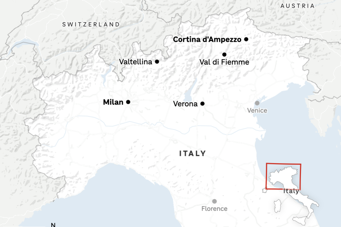 Where is it happening? The action is divided among four main clusters across northern Italy: Milan, Cortina d'Ampezzo, Valtellina and Val di Fiemme. Athletes will live in one of six Olympic Villages throughout the region: Milan, Cortina, Anterselva, Bormio, Livigno and Predazzo.