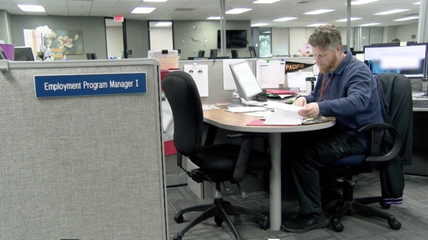 A staffer works to process claims at California's unemployment office, March 30, 2020. (California Employment Development Department)