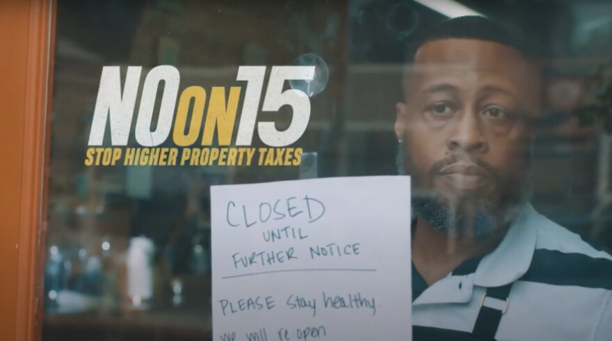 “As higher property taxes push our costs up, family businesses will go under,” the narrator says in the ad.