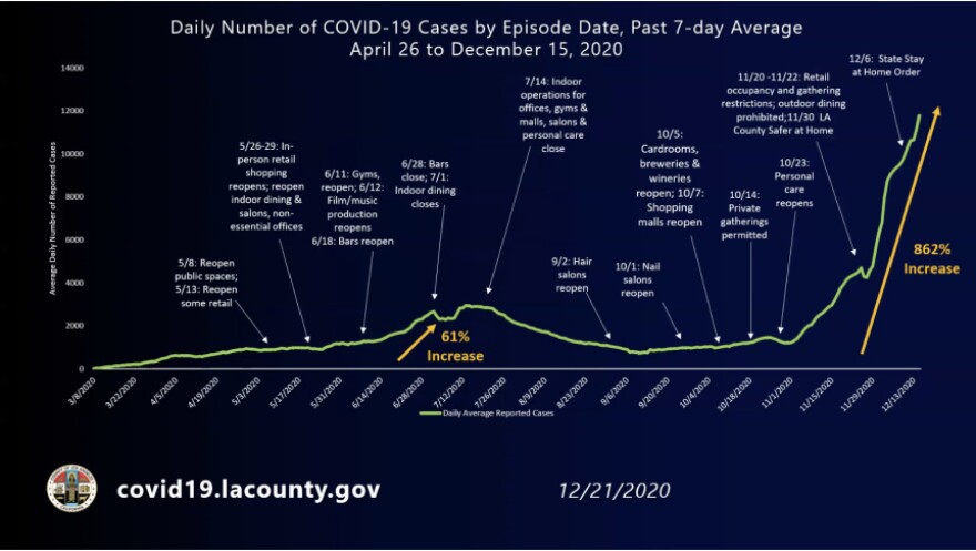 Here's a look at longer-term trends in the county. To see more, visit our California COVID-19 Tracker and choose L.A. County or any other California county that interests you. These numbers are current as of Sunday, Dec. 20: