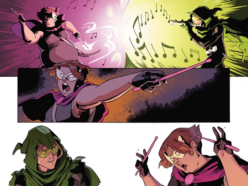 New character Drummer Boy is someone who has an aggressive, forward-thinking, Gen Z approach to heroism, according to Grace. He resorts to crime as a landlord raises rent on a gay neighborhood, ranging from bars to homeless resource centers and trying to force everyone out.