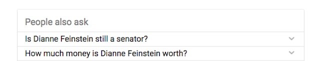At 84 (she'll be 85 by the 2018 election), Feinstein is the oldest U.S. Senator currently serving. She may be a stalwart of California politics, but her centrist views have not endeared her to progressives. This is particularly true in a political climate where rising stars are making their names in opposition to the current administration, and in a state that has, according to the L.A. Times, "grown markedly more liberal since [Feinstein] was first elected." Her relevance is also debatable to some—see the very first suggested question on the first page of Google search results for "Senator Feinstein":
