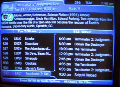 Encore Action, channel 532 if you have DirecTV, will be having an Arnold Marathon today with a nice little rotation of Terminator, T2, and Conan The Destroyer.