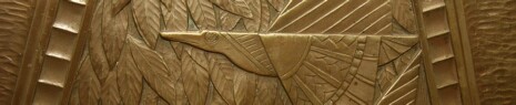 Style Moderne actually started inside the buildings as a new style of interior decorations and soon made its way to the outer faces of the new buildings that were sprouting out of the ground in LA despite the Depression. The first building we stopped at was the Oviatt Building at 617 S. Olive Street, which on the outside is of the Italian Romanesque style, but on the inside is beautifully decorated in the Art Deco style with rich french oak paneling, ornate brass doors and imported Lalique glass throughout.