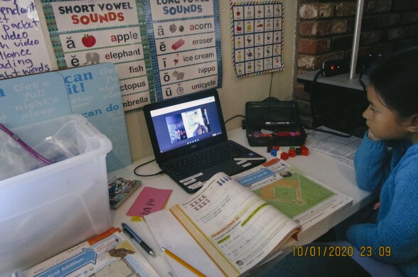Maria transformed one side of her grandson’s bedroom into a virtual classroom.