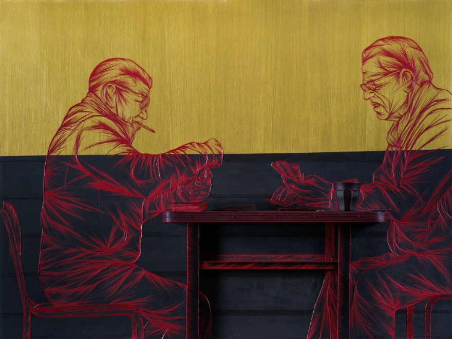This is an encore presentation of Francesca Bifulco and Alex Schetter's immersive art installation, which premiered in April. Originally intended to be a site-specific project in Naples, the project's title comes from a graffiti tag (Forcella Regna) that referred to crime syndicate battles. Bifulco embedded herself with a group of men who play cards on a corner staircase, "unwitting actors in an improvised show." The installation combines her sculptural paintings with hybrid stage design. All ages.