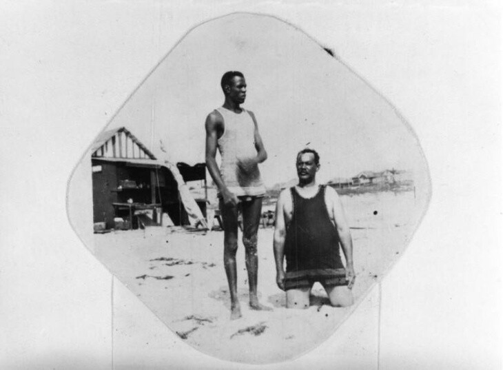Here, Gabaldón would bodysurf for hours, impressing two white lifeguards who loaned him a rescue board. With this heavy, 13-foot board, Gabaldón taught himself to surf, becoming the first documented Black surfer in America. He eventually took to riding the waves in Malibu, paddling six miles north and another six miles back, because he knew he would not be welcome walking on most of Santa Monica's beaches.