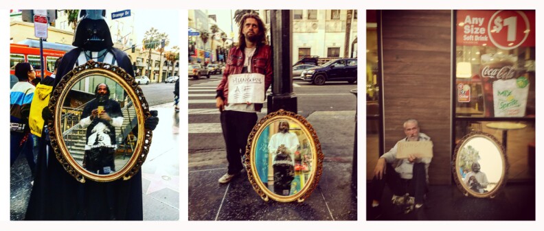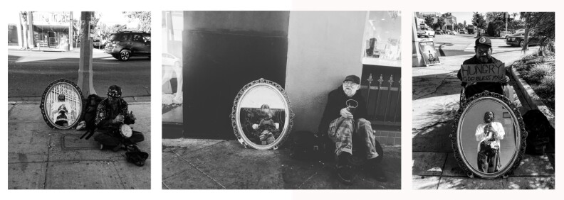 It wasn't easy. As I stood there next to my shopping cart, I looked like I was begging for change and people would avoid me. I would stand there for hours before anyone would agree to hold the mirror. A lot of times, after being there all day, I would lose the light without finding a willing subject. There was a certain time of day when the light would hit just right across a person's face.
