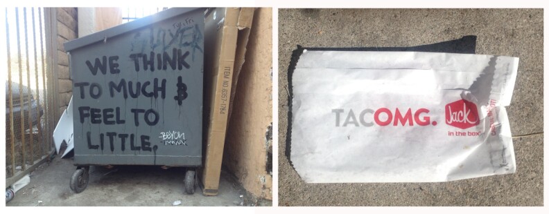 In October of 2014, I had been deported out of Thailand back to Los Angeles (long story) and found myself at old haunts in the Fairfax District. I was seeing friends I hadn't seen in almost 10 years. One of them was "Slayer," a homeless graffiti artist, tagger and dumpster diver.