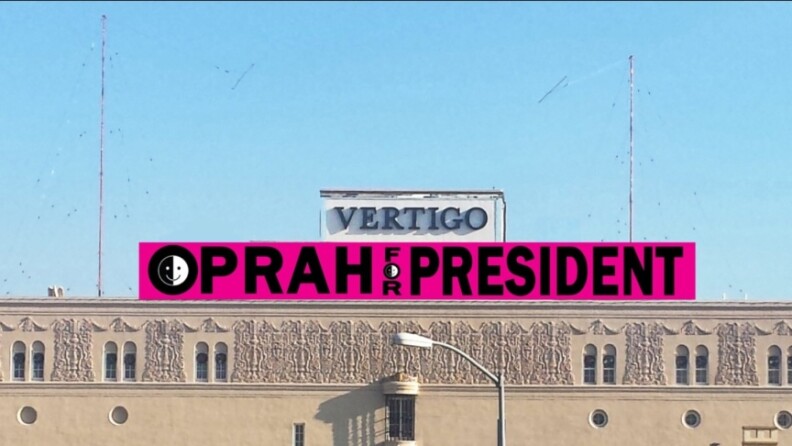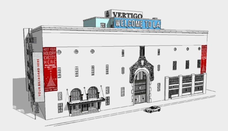 The signs in question can be seen atop the Vertigo building, which houses events space Casa Vertigo.