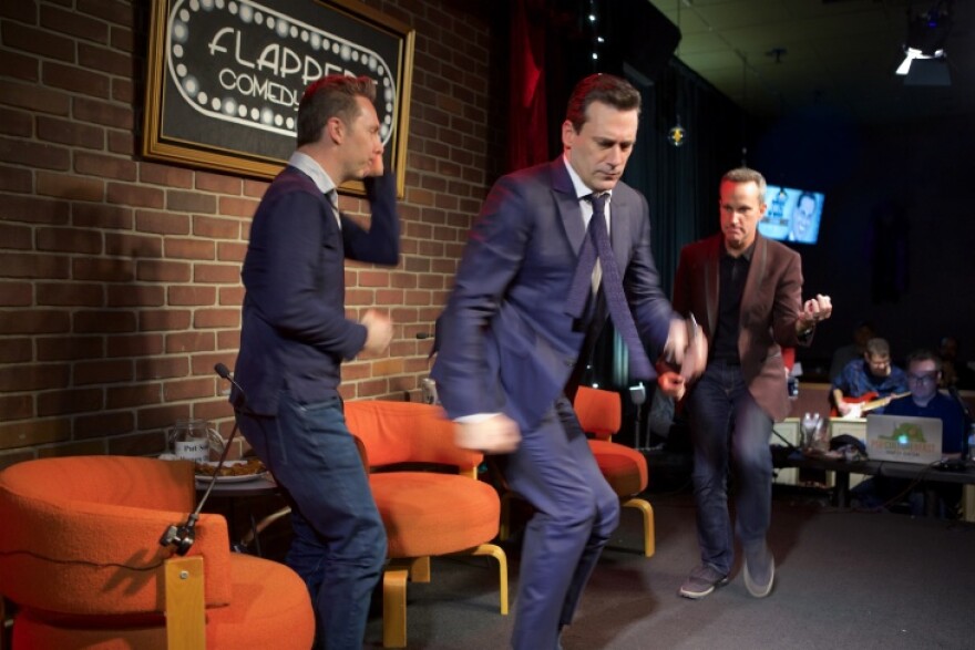 Jon Hamm was an early fan. He appeared on the show early on, and helped as the show discovered what it was going to be, popping his head back in throughout the marathon.