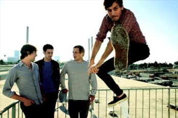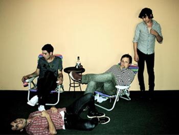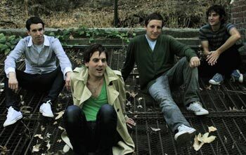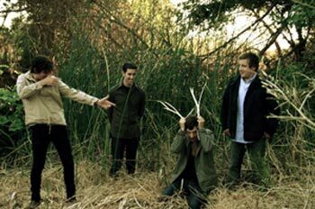 This young moose...er man who is being shot by his band mate is none other than Justin Kennedy the lead singer of Army Navy. Kennedy's history begins in Seattle where he co-lead the band Pinwheel with Ben Gibbard (of Death Cab for Cutie fame.) When Pinwheel came apart, Kennedy headed south to begin again in Los Angeles. Here he put together one of the best brop (brainy pop) outfits in the Southland. His infectious melodies will stick themselves in your head like super glue. They are playing tonight at the Troubadour in support of their stunning debut self-titled album,which was released in October. Mr. Kennedy was kind enough to talk to us yesterday from San Francisco.