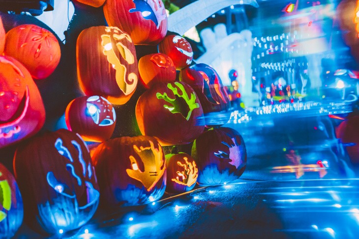 One lower-profile part of the land to watch out for, according to Croudo: you can honor a loved one by writing a loved one's name on a leaf and placing it on the Pumpkin Nights family tree, serving as a Halloween ofrenda.