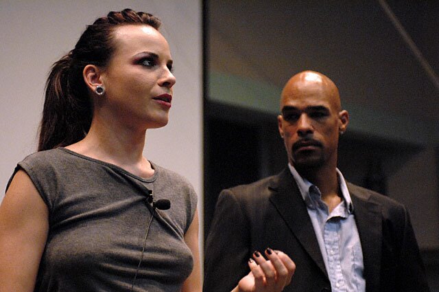 Last Thursday, pornstar and director (and Fleshbot Crush Object, link NSFW) Dana DeArmond (MySpace) and her boyfriend Daniel (MySpace), along with pornstars Justin Long (NSFW) and Jon Jon (NSFW), were featured guest speakers in Professor Kassia Wosick-Correa's Sociology of Sexuality course at UC Irvine.