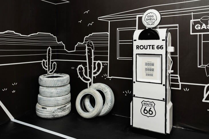 This Route 66-themed eggstallation is quite nice and cool looking, though we're not quite sure if changing "Shell" to "Egg Shell" is inspired or eggsasperating.