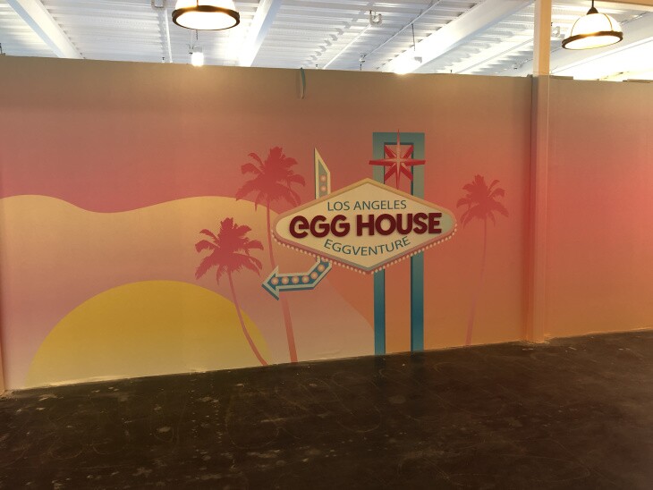 You'll find one Egg House backdrop styled like an old Vegas sign -- sure. Close enough, feels southwest-y. It's not quite as great as [the non-vandalized version] of L.A.'s Pink Wall, but we're sure you can get some nice photos with the sunset-hued background.