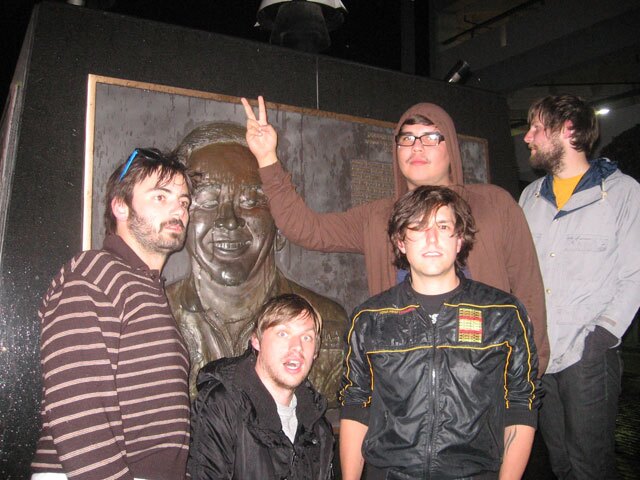 Bill Gray (bass/vocals) and Jonathan Gray (vocals/keyboards) are cousins. Tim Byron, who co-founded the band, has left touring duties to pursue law school, although he will “parachute in once in a while to say "what's up?"’ He is brother to Jeff Byron (guitars/computers/vocals), who’s homies from way back in the day with Breeck and Ezra Buchla, their recently departed singer. (Corey Fogel, the craziest dude you’ll never meet, was also at one time a major player.) They’ve all “attended The University of Life at one time or another, among various other well respected institutions of higher learning,” although new drummer/photoshop expert Jacob Cooper confesses to attending “one month of community college, I think it was called LOL college.”