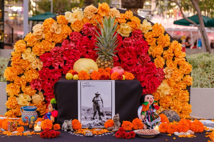Guests can experience and learn about the religious and cultural traditions of Día de los Muertos while visiting 11 altars located throughout Grand Park. Ten of the altars were done by artists and community partners. They represent the losses and causes of this past year.The 11th is the annual Community Altar created by Maestra Ofelia Esparza and her family. Stories and audio guides are available to complement the altar viewing. Visitors can access the audio through Grand Park's Mixcloud and YouTube channels. Because of COVID-19, people are asked not to gather or linger in large groups, leave their own ofrendas or touch the Community Altar.