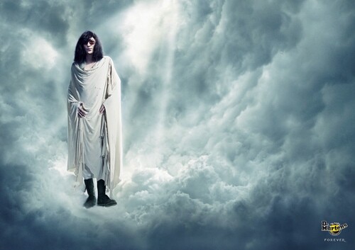 Recently the British company behind Doc Martens boots hired the famous ad company Saatchi & Saatchi to put together an advertising campaign that featured four dead punk rock heroes in Heaven wearing nothing but a sheet and a pair of the iconic combat boots.