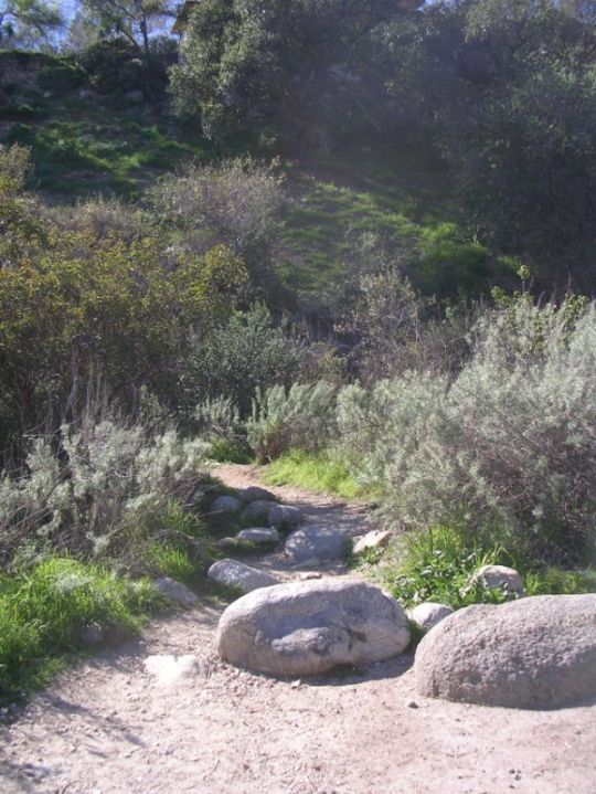 Our first challenge was locating the hike in the first place. The entrance to the 2-mile trail was closed, we learned upon asking a friendly passing Pasadena pedestrian, due to mudslides. But he directed us to another entrance, one a bit further down the hill but easily accessible and, he said, on the way to the waterfall. Hidey-ho, neighbor!