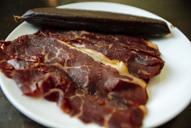 A cured meat known for its intense garlic-and-spice smell, basturma is an Armenian favorite. It can be eaten a few different ways. Sometimes, you'll find it served as an appetizer alongside lavash and string cheese. At breakfast, it's incorporated into egg dishes. Larger groceries like Super King and Jons tend to have basturma in the deli section. You'll also find it at many smaller Armenian grocers. Garo's Basturma in Pasadena is famous for its housemade version. On a recent trip to the shop, almost all of the customers were ordering a batch. I prefer a lean cut, which I brought to my mother's house for Easter dinner, and it earned the seal of approval.