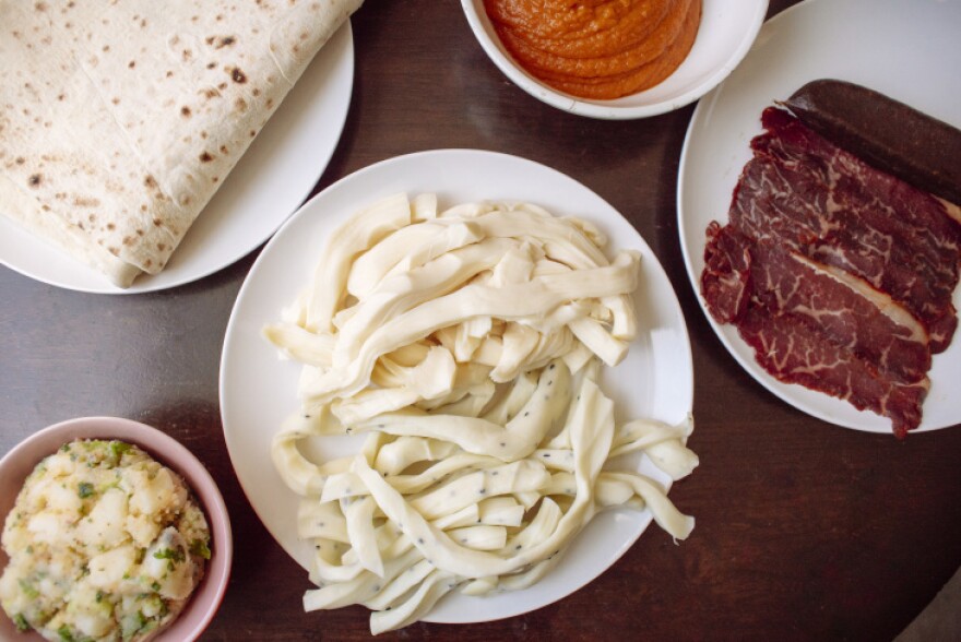 Armenians love their string cheese. In Armenian cuisine, it's often part of the mezze (appetizer) spread. The cheese, different from typical American, mozzarella-based string cheese, can come with or without caraway seeds, and most Armenian markets carry a few different brands. My favorite is from Karoun because the braided chunks can be unwound into thicker pieces that work well in wraps. Founded in L.A. by an Armenian family, the company produces their cheese at a plant in Turlock.
