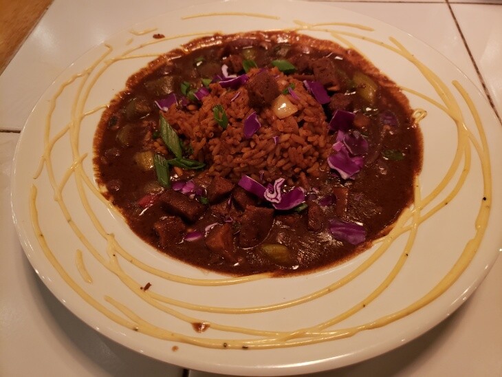 "Tastes so good you wanna tell somebody!," says the website for Cafe Creole. Founded by Eric Lanueville in 2014 and managed by Keith Adams, this small charmer in the Baldwin Hills Crenshaw Plaza approaches traditional bayou recipes with reverence. Its gumbo features jumbo shrimp, sliced chicken and chicken sausage in a hickory-colored, crab-seasoned roux pulled from Lanueville's home state of Louisiana. The jambalaya, with its bright red vegetable roux, is every bit the gumbo's equal. Cafe Creole's food court digs look inauspicious but its devoted patrons know it's a gem.