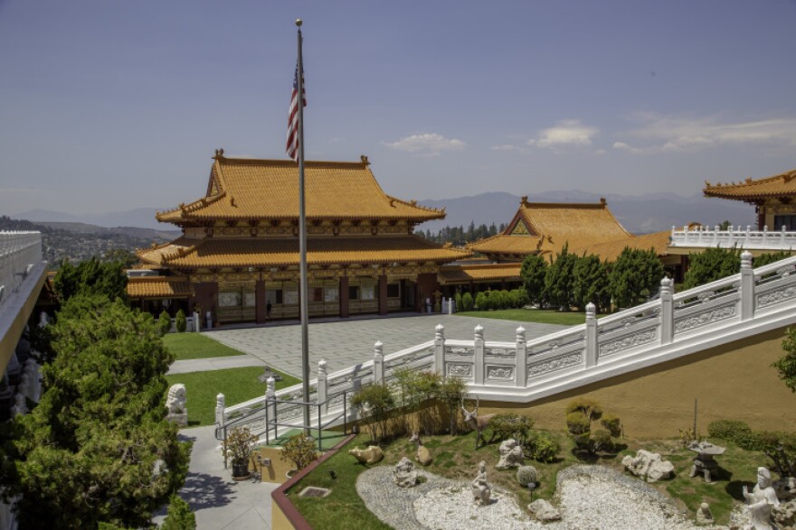 The grand surroundings are built to mimic ancient Chinese monasteries with a nod to the architecture styles of the Ming and Qing dynasties. It wasn't always so tranquil, Hsi says. When the temple was first built in the 1980s, its founders faced fierce resistance from some members of the Hacienda Heights community.