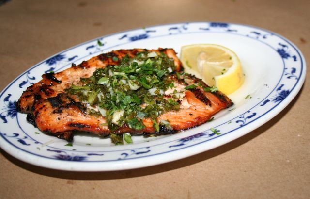 The DineLA menu would not have been satisfying enough on its own, so we were lucky that we had ordered a number of other favorites. The sweet potato fries were delicious, if a little predictable. I enjoyed the Spanish tortilla, a potato-filled omelette that a Spanish room-mate got me hooked on years ago. The salmon was thinly sliced and had such a nice char it was almost crispy. The artichoke heart and goat cheese croquettes are probably one of the best things I have ever eaten. I never even imagined such a perfect dish could exist. An order of pork rolled with ham and cheese was pounded and fried like a cutlet, but served sliced like a dragon roll - it was an Atkins follower's dream - pork sushi! For me, it was Creosote's last mint - wafer thin - the final straw that made me practically explode. The food was so delicious I could have eaten myself to death like a goldfish.