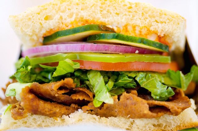 tomato, onion, green pepper, cucumber and tzatziki. You can choose either beef and lamb, chicken, or mixed meats. An added bonus is that their Little Tokyo location has an awesome happy hour, so you can wash it down with a local craft brew.