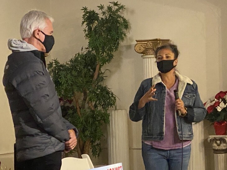 "If you do not live up to your bargain, we will come to your house," Corado said as the crowd clapped. "I will ... give out your personal phone number. I want you to understand the gravity of the situation."