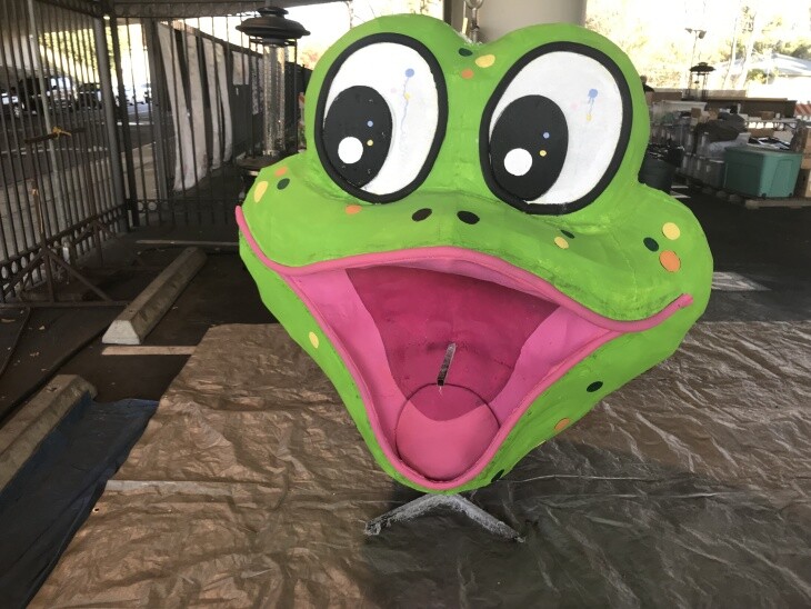 The group has been making Rose Parade floats since 1978, and this year's creation features three massive instrument-playing frogs in a very colorful bayou.