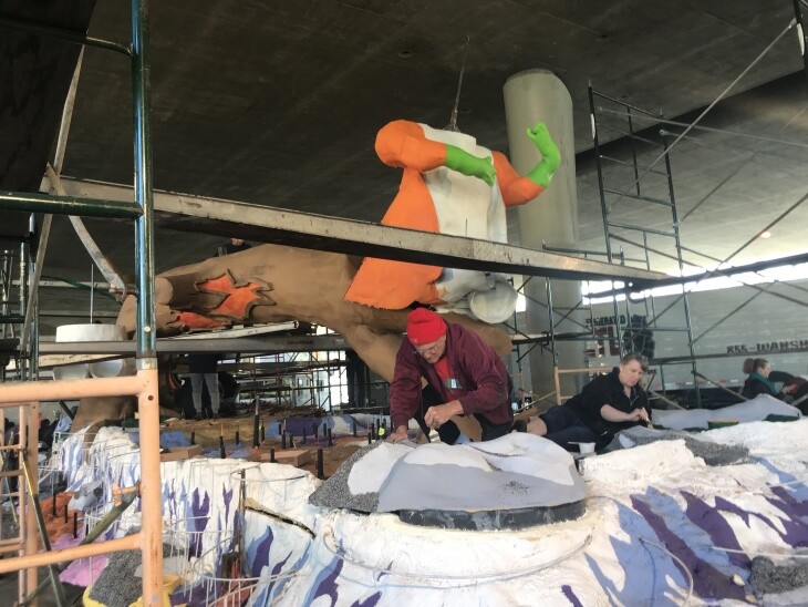 Organizers say it's a long, slow process from design sketches to the finished product. The team started building the smaller float elements in March, with groups meeting every Saturday.