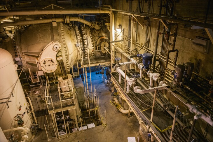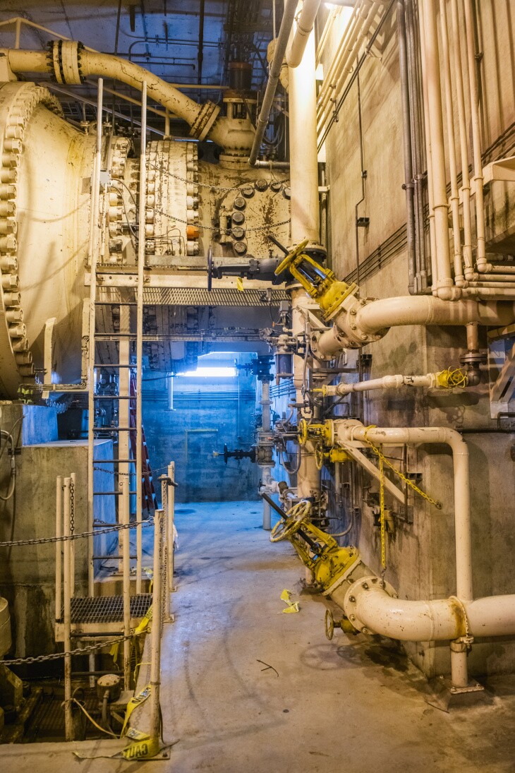 At the very bottom of the plant, we're 90 feet under the water level of the lake.