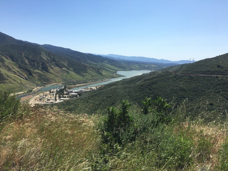 Here's another look at those massive pipes from a different perspective, way up on the mountain looking down at Castaic Lake.