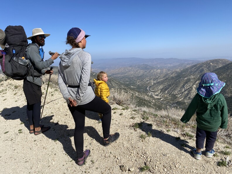 I joined them for three days in April as they hiked north over the San Gabriel Mountains, because I had to know how hiking sometimes 15 miles a day with tiny humans — two of the three kids are walking, the youngest is in a carrier — is even possible.